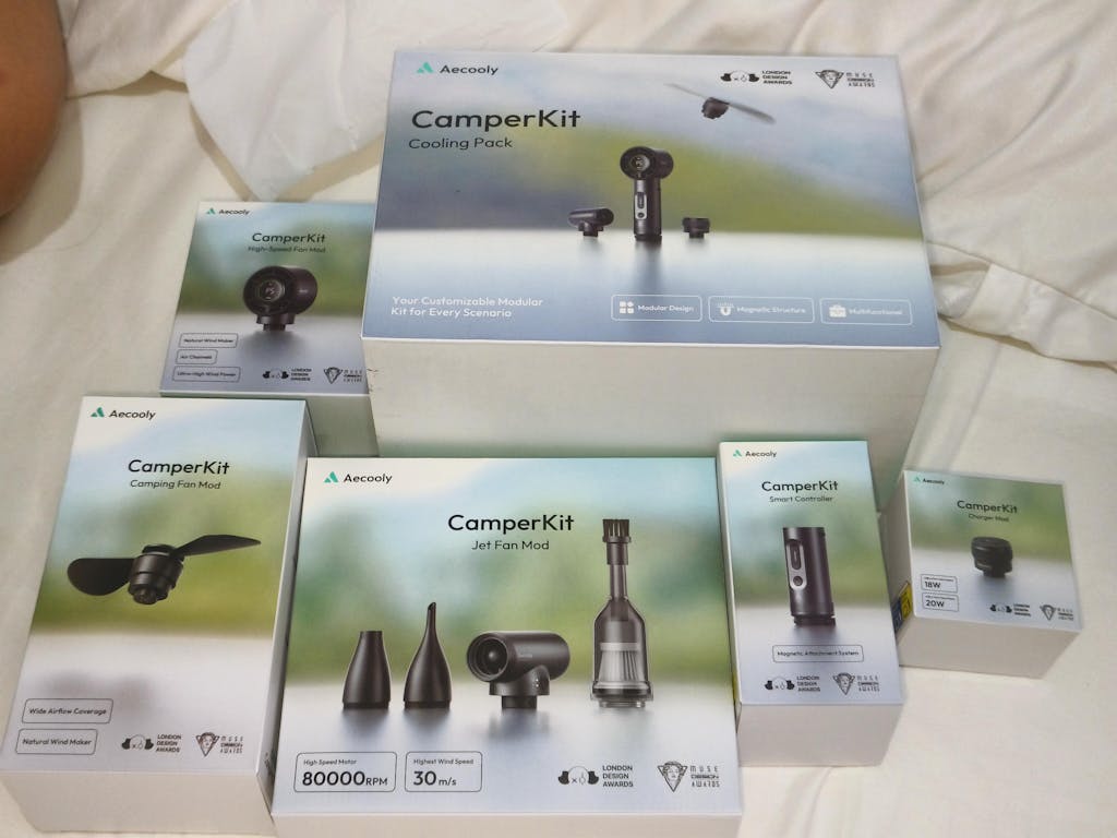 The Aecooly CamperKit Cooling Fan Pack is a modular system that provides a variety of cooling solutions for outdoor activities like camping and van life. It is a component of the larger Aecooly CamperKit, an all-in-one multi-tool system that features a centralized "smart controller" and multiple interchangeable modules for different functions.